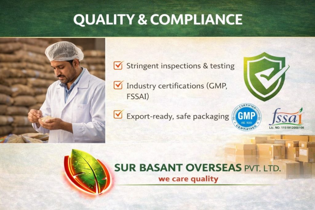Quality-Focused Approach: Quality is central to everything we do. Our products undergo stringent checks for cleanliness, grading, moisture and packaging before dispatch to ensure compliance with export and food safety norms.